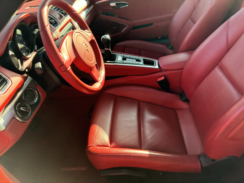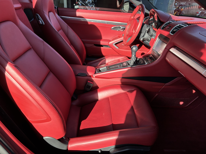 ポルシェ ボクスター(Type981) ボクスター 左ハンドル 6速MT 赤革 純正ナビ バックカメラ 2Way電動シート レッドソフトトップ 純正18インチA/W 電動格納ドアミラー SPORTモード バイキセノンヘッドライト スポーツシート ブラックキャリパー