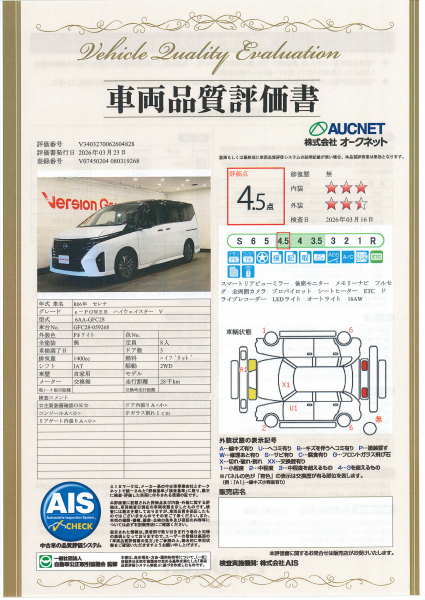【AIS車両品質評価書付】