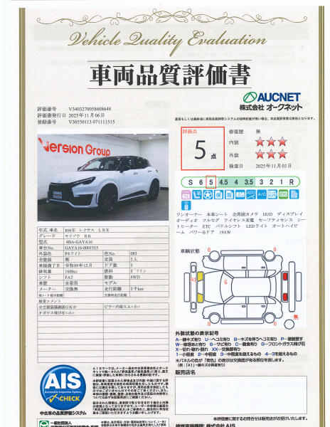 【AIS車両品質評価書付】