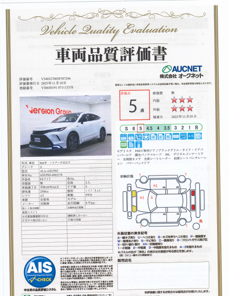 【AIS車両品質評価書付】