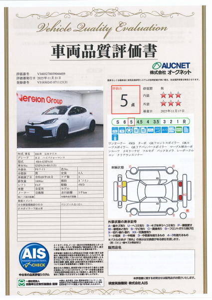 【AIS車両品質評価書付】