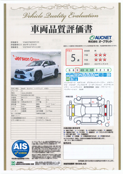 【AIS車両品質評価書付】
