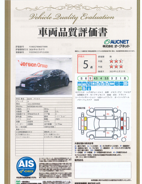 【AIS車両品質評価書付】