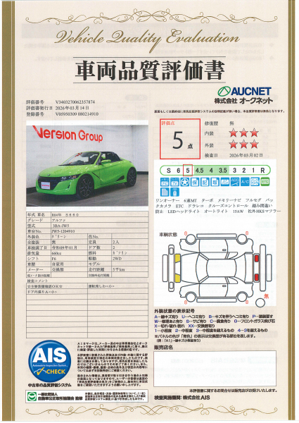 【AIS車両品質評価書付】