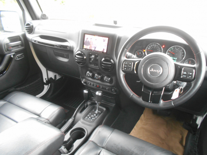 2012年モデルのアンリミテッド特別仕様車アルティテュードになります。当時、サハラをベースとした限定車「アルティテュード(Altitude)」が設定され、外装にはシリーズの特徴であるグロスブラックカラーの18インチアルミホイールやブラックカラーのフューエルフィラードアを装着。内装には、レッドステッチ入りのブラックレザーシートやステアリングホイールを設定という内容がカタログにありました。