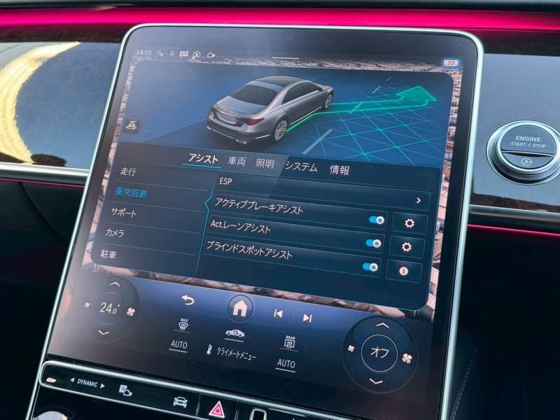 ●SRSサイドエアバッグ(後席)●SRSセンターエアバッグ●レーダセーフティーパッケージ[アクティブディスタンスアシスト・ディストロニック、自動再発進機能、アクティブレーンチェンジングアシスト、トラフィックサインアシスト、PRE-SAFEインパルスサイド、アクティブステアリングアシスト、アクティブレーンキーピングアシスト]●360°カメラ●アクティブパーキングアシスト●後席シートベルトインジケーター●チャイルドセーフティシートセンサー(助手席)●アクティブボンネット