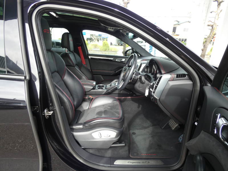 ポルシェ カイエン GTS V6ツインターボ 後期型 黒半革 パノラマSR スポーツクロノPKG スポーツエグゾースト HIDヘッドライト クルコン 8Wayパワーシート シートヒーター PCMナビ地デジ Bカメラ 電動Rゲート BOSEサウンドシステム RSスパイダー20AW 赤キャリパー パワステプラス 禁煙 右H 1オナ 正規D車