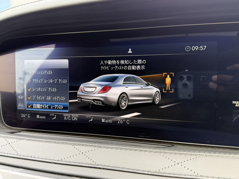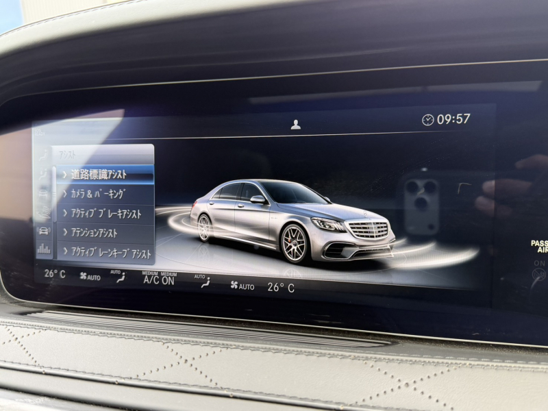 ●ナイトビューアシストプラス●ラグジュアリーヘッドレスト(後席)●AIRマティックサスペンション●AMG RIDE CONTROLスポーツサスペンション●AMG強化ブレーキシステム●チタニウムグレーペイント20インチAMGクロススポークアルミホイール●パノラミックスライディングルーフ●S63専用AMGスタイリングパッケージ(フロントスポイラー・サイド&リアスカート)●赤外線反射ノイズ軽減ガラス●AMGデュアルツインクロームエグゾーストエンド●AMGスポーツエグゾーストシステム●フルレザー仕様(DINAMICAルーフライナー付)●本革巻ステアリング●エクステンテッドウッドインテリアトリム●designoブラックアッシュウッドインテリアトリム●ステンレスアクセル&ブレーキペダル●シートヒータープラス●シートベンチレーター●マルチコントロールシートバック●ドライビングダイナミックシート●リラクゼーション機能●AMGスポーツシート●AMGスポーツステアリング●メモリー付パワーシート(後席)●シートヒーター(後席)●シートベンチレーター(後席)●電動シートバック(後席)●助手席コントロール機能(後席)●ヘッドレストクッション(後席)●ラグジュアリーアームレスト(後席)●IWC INGENIEURデザインアナログ時計●AMGダイナミックセレクト●AMGスピードシフトMCT●ヘッドアップディスプレイ●AMGメーターパネル●クロージングサポーター●マジックビジョンコントロール●ヒーテッドウィンドウウォッシャー●電動ブラインド(後席左右・リアウィンドウ)●盗難防止警報システム●イルミネーテッドステップカバー●エアバランスパッケージ●後席専用クライメントコントロール●Burmesterサラウンドサウンドシステム