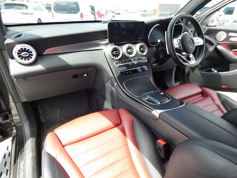 メルセデスベンツ GLC GLC220d 4M クーペ AMGライン 後期型 レザーエクスクルーシブPKG レーダーセーフティPKG ガラスSR 黒/赤コンビ革 シートヒーター LEDヘッドライト 純正MBUXナビ地デジ360°カメラ HUD 3Dburmesterサウンド エアサス フットトランク 純正19AW 禁煙 正規D車