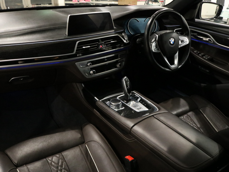 取説・記録簿付 事故歴ありません!! 人気の外装色ブラックサファイアにMスポーツ専用エクステリア&専用20インチアルミホイール、BMWレーザーライトが迫力有るエクステリアを演出!! 使用感はとても少なくロングボディならではの広々とした室内はお洒落なモカナッパレザーシートに全席シートヒーター&ベンチレーター、4ゾーンエアコンが装備されロングボディならではのリアコンフォートシート&アクティブベンチレーションシート、リアシートエンターテイメントシステムが標準装備!! 使い勝手の良いタッチパネル&ジェスチャーコントロール付純正HDDナビにディスプレイキー&リモートパーキング、harman/kardonサウンド、ヘッドアップディスプレイ、3Dビューカメラ、ドライビングアシストプラスが標準装備されフラッグシップサルーンに相応しい豪華装備満載です!! DOHC Ⅴ型8気筒ツインターボチャージャーエンジンと電子制御8速スポーツATにより言葉に尽くせないドライビングの醍醐味を堪能することができます!! 7シリーズ、ロングボディをお探しの方は是非お急ぎ下さい!!
