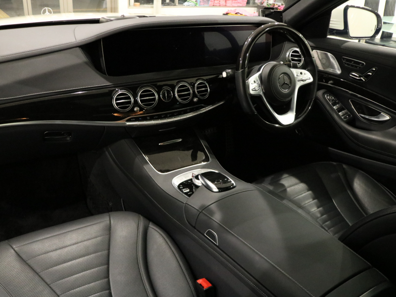 メルセデスベンツ Sクラス S400d AMGラインプラス レザーEXC-PKG 後期型 右H正規D車 パノラミックR 黒革 シートヒーター&ベンチレーター 純正ナビ地デジ Burmesterサウンド 全周カメラ&PTS HUD&レーダーセーフティPKG 社外サイドステップ&Rディフューザー&トランクリッドS CarlSSon製20AW