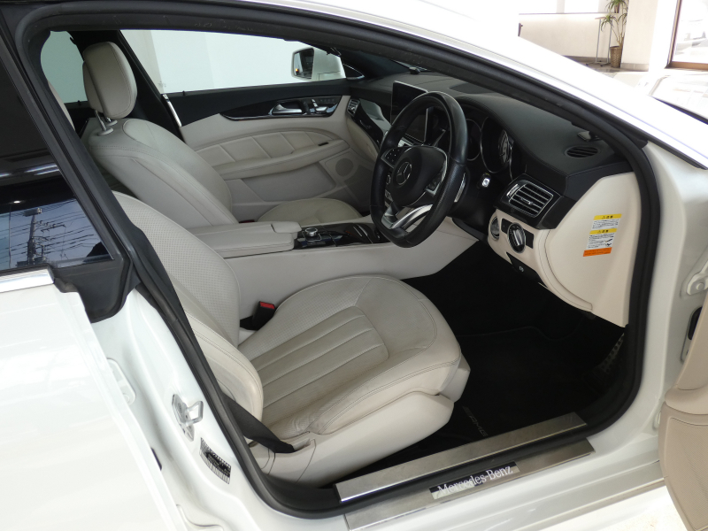取説・記録簿付 事故歴ありません!! 上品な外装色ダイヤモンドホワイトにAMGライン専用エクステリア&19インチアルミホイールが迫力有るエクステリアを演出!! 室内はお洒落なポーセレンレザーシートに快適な全席シートヒーターや前席ベンチレーション、3ゾーンエアコンに開放感有るガラススライディングルーフが装備!! ハーマンカードンスピーカーや使い勝手の良い純正HDDナビ、パワートランク&キーレスゴーが装備され、運転操作をサポートするレーダーセーフティパッケージやオプションの360°カメラシステムが装備され安全運転を全面的にサポートし事故を未然に防いでくれます!! V型8気筒ツインターボBlueDIRECTエンジンと電子制御9速AT(9G-TRONIC)、AIRマティックサスペンションが相まって言葉に尽くせないドライビングの醍醐味を堪能することができます!! 上級グレードのCLS550をお探しの方お急ぎ下さいませ!!