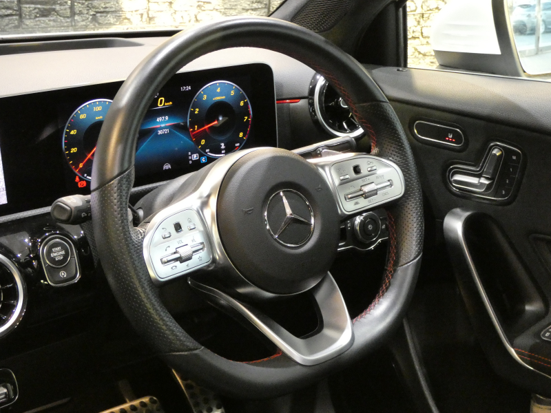 メルセデスベンツ Aクラス A180スタイル AMGライン アドアンスドPKG ナビゲーションPKG レーダーセーフティPKG パノラミックスライディングルーフ LEDヘッドライト ブラックハーフレザー シートヒーター 純正MBUXナビ 地デジ Bカメラ 純正18AW 禁煙 1オーナー 正規ディーラー車