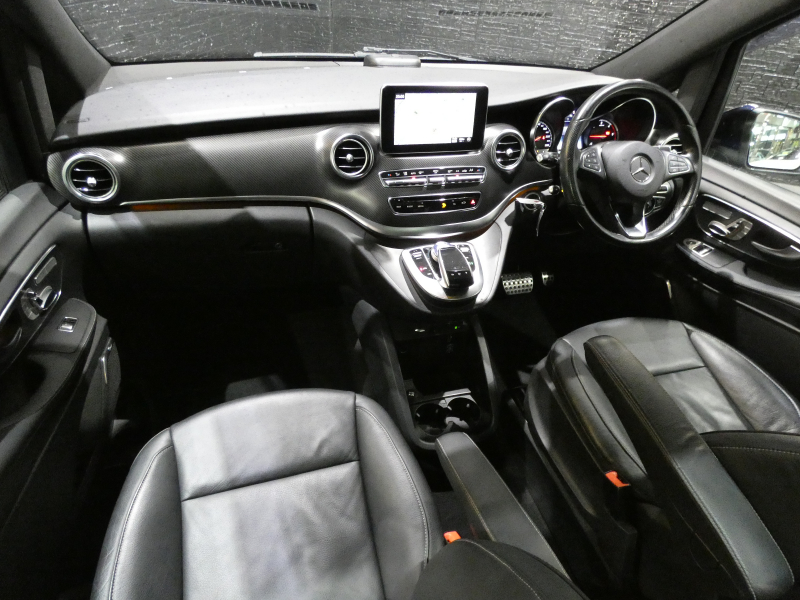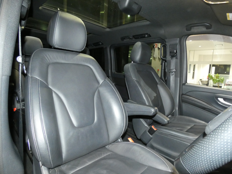 メルセデスベンツ Vクラス V220d スポーツ ロング レーダーセーフティPKG パノラミックスライディングルーフ ブラックレザー シートヒーター リアAC Burmesterサラウンド パワートランク 純正COMANDシステム ナビ 地デジ 360°カメラ 純正19AW 禁煙 正規ディーラー車