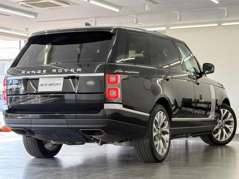 フル装備 ABS ETC EBD DSC RSC CBC HDC EPB EPAS SRSエアバック AWD(4WDシステム) ロートラクションローンチ ツインスピードトランスファーギアボックス テレインレスポンス2 アダプティブダイナミクス 電子制御エアサスペンション インテグレーテッドツインテールパイプ デプロイアブルサイドステップ エマージェンシーブレーキアシスト 21インチ[スタイル7001]7スプリットスポークホイール(ライトシルバーダイヤモンドターンドフィニッシュ) グレイ陽極酸化処理ブレーキキャリパー アトラスエクステリアアクセント(サイドベントグラフィック/サイドアクセントグラフィック) スライディングパノラミックルーフ アイボリースウェードクロスヘッドライニング エボニー/アイボリーパーフォレイテッドセミアリニンレザーシート シートスタイル8【24Wayメモリー付パワーシート・全席シートヒーター・全席シートクーラー・前席マッサージ機能・4ウェイ電動フォールドヘッドレスト(2ウェイマニュアルウィング)・4ウェイ電動リアヘッドレスト(マニュアルチルト&ウィング付)・4ウェイランバー・電動展開式リアセンターコンソール・エクストリームパッセンジャーシートアウェイ・コンビニエンスフォールド(リモートインテリジェントシートフォールド付)・インテリジェントシートカーゴモード】 ステアリングヒーター 4ゾーンクライメートコントロール 空気イオン化テクノロジー グランドブラックインテリアフィニッシャー コンフィギュラブルアンビエントインテリアライティング 電動リアサイドウィンドウサンブラインド ピクセルレーザーLEDヘッドライト(シグネチャー付) AFS(アダプティブフロントライト) ADB(ピクセルアドバンスドドライビングビーム) ダイナミックベンディングライト レーザーハイビーム LEDテールライト カミングホームライト 純正メモリナビ【Touch Pro Duo(メディアライブラリー・地デジ・USB・Bluetooth・ETC)】 純正CD/DVD 10インチリアシートエンターテイメント MERIDIANサラウンドサウンドシステム サラウンドカメラシステム パーキングエイド ドライブプロパック【ブラインドスポットアシスト・ドライバーコンディションモニター・レーンキープアシスト・トラフィックサインレコグニション&アダプティブスピードリミッター・アダプティブクルーズコントロール(キューアシスト付)】 ソフトドアクローズ パワージェスチャーテールゲート 電動格納ミラー(自動防眩・ヒーター・メモリー・アプローチライト付) 電動チルト&テレスコピック マルチファンクション付レザー&ウッドステアリングホイール インタラクティブドライバーディスプレイ アルミニウムトレッドプレート(イルイネーション機能/Autobiographyスクリプト付) 水冷V型8気筒DOHCスーパーチャージドエンジン 8速AT パドルシフト キーレスエントリー プッシュボタンスタート/ストップ アイドリングストップ機能 レインセンサー 右ハンドル LAND ROVER正規ディーラー車