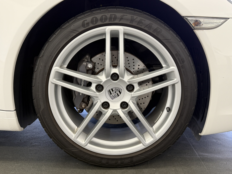 安心の正規ディーラー車!! 運転しやすい運転し易い右ハンドル&7速PDK搭載!! もちろん事故歴ありません!! 人気の外装色ホワイトにシングルチューブツインエグゾーストテールパイプ&純正19インチアルミホイールがお洒落なエクステリアを演出!! 心地よい禁煙の室内はハイセンスなヨッティングブルーレザーインテリア&セミパワーシートに便利な電動可倒式ミラー、運転操作をサポートするリアビューカメラや夜間の運転をサポートするキセノンヘッドライトも装備され、純正SDナビ・CD(ミュージックサーバー)・地デジ・ETC装備!! 先代モデルからダウンサイジングしたものの350psを発生する水平対向6気筒エンジン&スポーツクロノパッケージがストレスの無いドライビングを可能とし、アイドリングストップ機能も装備され燃費においても経済的でおすすめです!! 911をお探しの方は是非お急ぎ下さい!!