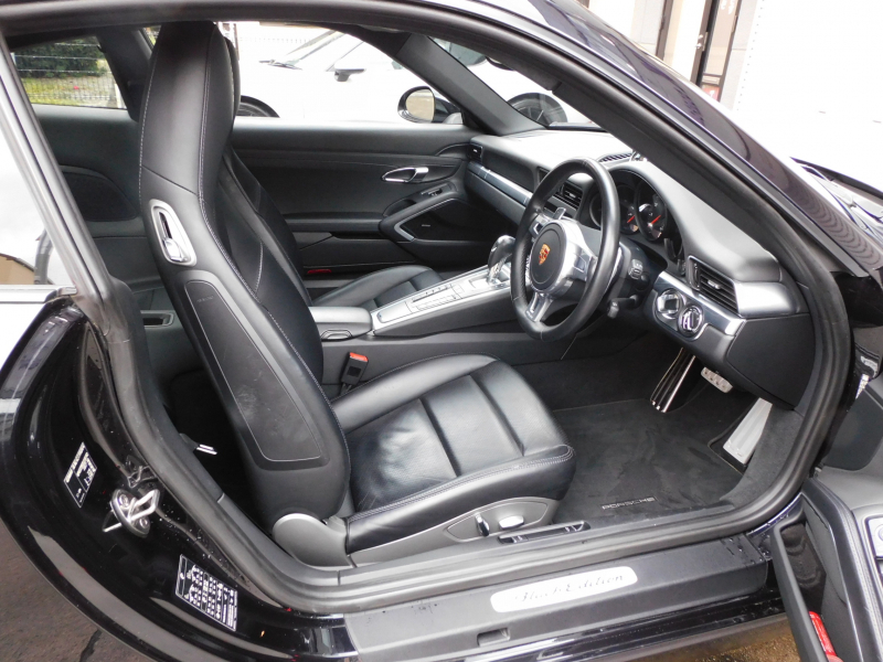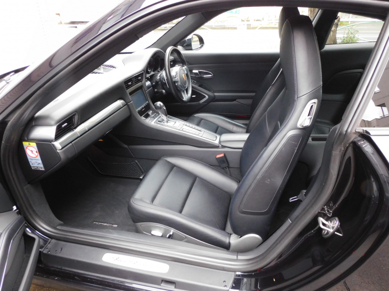 希少な前期最終特別仕様車ブラックエディション!! 安心の正規ディーラー車!! 運転しやすい右ハンドル&7速PDK搭載!! 取説・記録簿付 もちろん事故歴ありません!! 人気の外装色ブラック&スポーツデザインフロントエプロンの組み合わせに純正20インチ911ターボデザインホイール、ブラック仕上LEDヘッドライト(PDLSプラス付)が装備され迫力あるエクステリアを演出!! 心地よい禁煙の室内は使用感も少なく落ち着いたブラックレザーシート&高級感漂うエンボス加工ヘッドレストに快適なシートヒーターが完備!! ブラックエディションならではのリアビューカメラ&パークアシストシステム、クルーズコントロール、BOSEサウンドシステムも装備され純正SDナビ・CD(ミュージックサーバー)・地デジ・ETC、便利なエントリー&ドライブ付!! ドライビングプレジャーを掻き立てるスポーツクロノパッケージ&スポーツエグゾーストシステムに350psを発生する水平対向6気筒エンジンがストレスの無いドライビングを可能とし、アイドリングストップ機能も装備され燃費においても経済的でおすすめです!! お探しの方は是非お急ぎ下さい!!