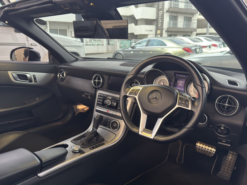 取説・記録簿付 事故歴ありません!! 人気の外装色オブシディアンブラックに純正17インチアルミホイール付き!! 使用感はとても少なく心地よい禁煙の室内はレザーパッケージならではの高級感漂うブラックレザーシートに快適なシートヒーターやトレンドならではのエアスカーフが完備!! 純正HDDナビ・CD(ミュージックレジスター)・地デジ・Bluetoothオーディオ・ETC装備!! DOHC直列4気筒ターボエンジン&7G-TRONICがストレスの無いスポーティなドライビングを可能としECOスタート/ストップ(アイドリングストップ機能)により燃費向上を実現!! 税金面においても経済的で初めての方にもおすすめです!! 良質なR172型 SLKをお探しの方お急ぎ下さい!!
