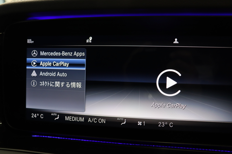 ●COMANDシステム 12.3インチワイドディスプレイ COMANDコントローラー タッチパッド タッチコントロールボタン 音声認識機能 ナビゲーション機能:HDDナビゲーション、VICS3メディア オーディオ/ビジュアル機能:AM/FMラジオ、テレビ(12セグ/ワンセグ自動切替)、USBメディアインターフェース×2、SDカードスロット、Bluetoothオーディオ機能 コミュニケーション機能:COMANDオンライン スマートフォン連携機能:AppleCarPlay、AndroidAuto ●12.3インチコックピットディスプレイ●携帯電話ハンズフリー機能(Bluetooth携帯電話対応)●ETC2.0対応車載器●デジタルオーナーズマニュアル