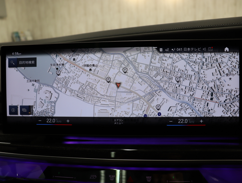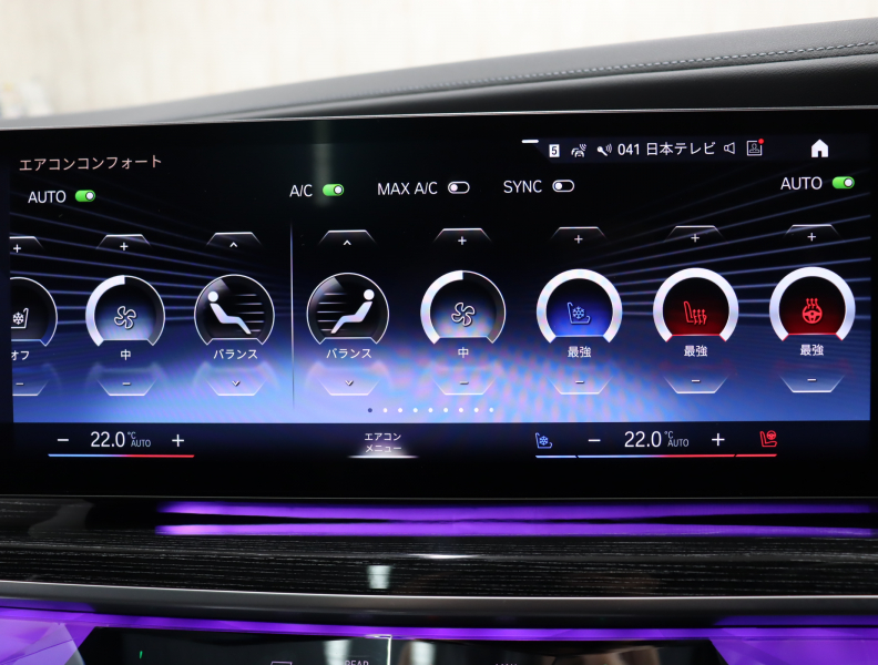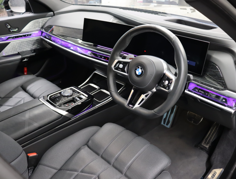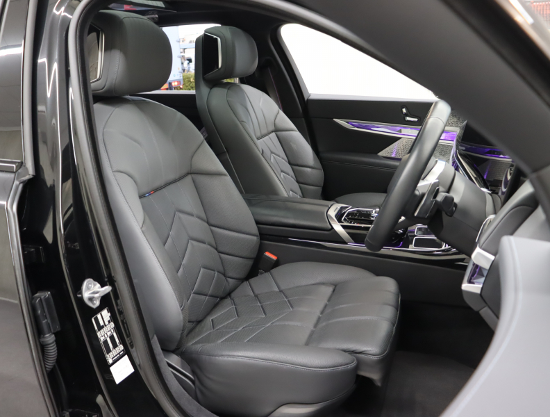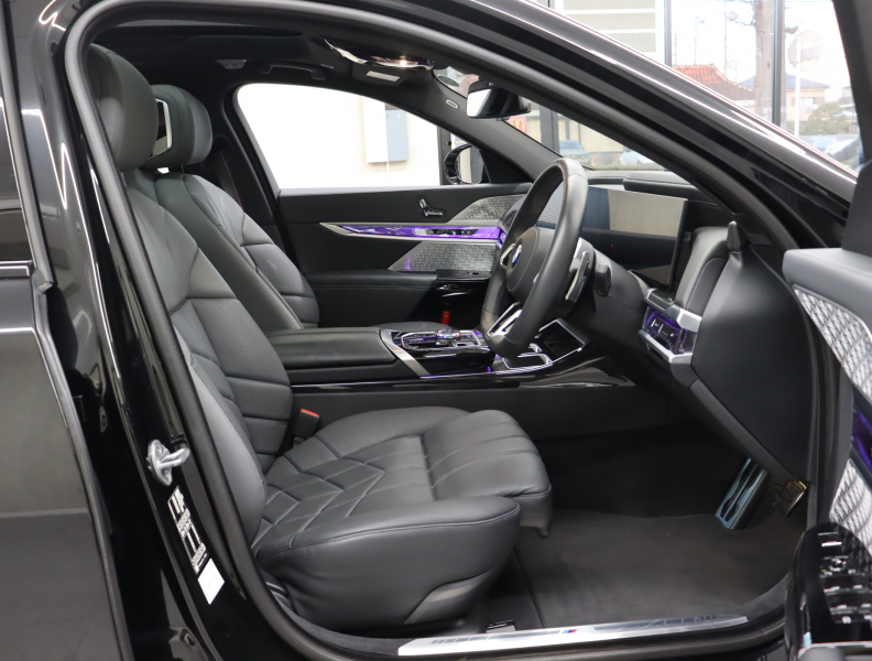 ●BMWライブ・コックピット: ー BMWカーブド・ディスプレイ 12.3インチ マルチ・ディスプレイ・メーター・パネル ー BMWカーブド・ディスプレイ 14.9インチ ワイド・コントロール・ディスプレイ(タッチ・パネル機能付) ー HDDナビゲーション・システム(VICS 3メディア対応)●BMWインテリジェント・パーソナル・アシスタント(AI音声会話システム)●ワイヤレス・チャージング●パーソナルeSIM●ハンズフリー・テレフォン・システム●ITSスポット対応DSRC車載器(ルーム・ミラー内蔵、ETC機能付)●電動式チルト&テレスコピック・ステアリング・コラム●クラフテッド・クリスタル・フィニッシュ●BMWインタラクション・バー●オーディオ・ビジュアル・システム: ー ラジオ(AM・FM)ー 地上デジタルTVチューナー●USBオーディオ・インターフェイス●トラベル&コンフォート・システム●4ゾーン・オートマチック・エア・コンディショナー (ナノ・ファイバー・フィルター〔花粉除去機能〕付): ー 運転席&助手席 独立温度調節機能 ー 後席左右 独立温度調節機能 ー パーキング・ベンチレーション ーリモート・クライメート・コントロール機能●シート:ー マルチファンクション・シート(運転席&助手席、運転席メモリー機能付) ー フロント・アクティブ・ベンチレーション・シート ー フロント・マッサージ・シート ー シート・ヒーティング(フロント&リア)●スルーローディング・システム●エクステンド・レザー・メリノ・シート●センサテック・フィニッシュ・ダッシュボード●アンソラジット・ルーフ・ライニング●ベロア・フロア・マット●リーディング・ライト●リヤ・サイド・ウインドー・ローラー・ブラインド(電動)●クライメート・コンフォート・ガラス(赤外線反射ガラス:全面)●自動防眩ルーム・ミラー●照明付バニティ・ミラー(フロント)●照明付バニティ・ミラー(リヤ)●照明付グローブ・ボックス●ドア・シル・プレート●フロント・センター・アームレスト(収納ボックス付)●リヤ・センター・アームレスト(収納ボックス付)●カップ・ホルダー(フロント&リヤ)●ストレージ・パッケージ: ー Type-C対応USBソケット●Bowers & Wilkins サラウンド・サウンド・システム(655W、20スピーカー、9チャンネル・サラウンド