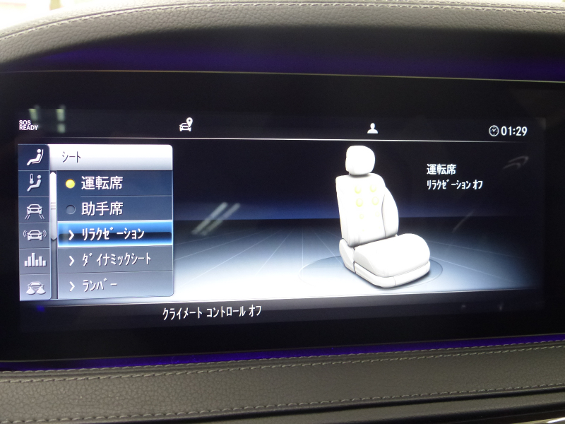 後席ショーファーポジションスイッチ 電動可倒式イージーアジャストラグジュアリーヘッドレスト(助手席) フットレスト付エグゼクティブリアシート(助手席側後席) 後席シートヒータープラス ステアリングヒーター 前後席ドアアームレストヒーター&センターアームレストヒーター 後席リラクゼーション機能付マルチコントロールシートバック リアエンターテイメントシステム 電動ブラインド(リア・リアサイド)