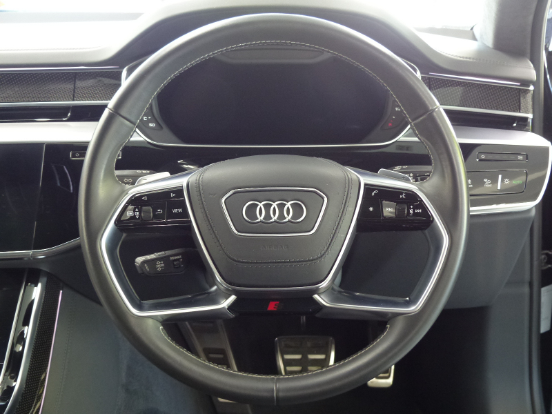 アウディ S8 S8 レーザーライト&コンフォートP V8TB 黒革 パノラマSR MMIナビ地デジ サラウンドビューカメラ HUD Bang&Olufsen Vコックピット 前後席Sヒーター 前席ベンチレーション&マッサージ ステアリングヒーター レーザーライト 自動トランク Pアシスト ハイビームA S8専用エアロ&21AW 禁煙1オナ