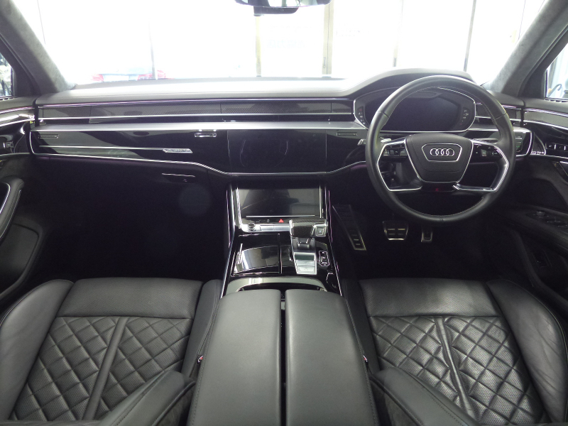 フレキシビリティとパフォーマンスを極め、贅沢に鍛え抜かれたスポーティーなフラッグシップセダンのS8!! 安心の右ハンドル!! 禁煙車 ワンオーナー 取説・記録簿付き もちろん修復歴御座いません!! 最高出力571PS(カタログ値)を発生させるDOHC V型8気筒4.0Lツインスクロール・ツインターボエンジン&48Vのマイルドハイブリッド(MHEV)&電子制御8速ティプトロニックオートマチックトランスミッションを搭載したモンスターマシン!! アウディならではのフルタイム4WDシステム「quattro」に、プレディクティブアクティブサスペンション・リアスポーツディファレンシャルを標準装備され、さらにはダイナミックオールホイールステアリングが俊敏なハンドリングとスポーティーな走りに磨きをかけております!! マイルドハイブリッドシステム&スタートストップシステムにより燃費向上を実現!! シングルフレームグリルデザインやバンパー&ボンネット形状を刷新!! 従来のマトリクスLEDより高精細と高解像度な照射が行えるHDマトリクスLEDヘッドライトの他、ハイビームの照射距離を2倍に拡大するレーザーライトパッケージ(アウディレーザーライト・OLEDリアライト)がオプション装備!! 外装色は人気のミトスブラック!! 内装は高級感漂うブラックバルコナレザースポーツシート&カーボンベクターデコラティブパネルの組み合わせ!! 10.1インチと8.6インチの2つの高解像度タッチディスプレイを備える最新世代のMMIにより直感的な操作を可能とし、ストレスの無いドライビングをご堪能頂けます!! 前席シートヒーター・後席サイド&リアブラインド・オートマチックトランクリッドはもちろんの事、前席ベンチレーション・バーチャルコックピット・サラウンドビューカメラ・パークアシストプラス・ヘッドアップディスプレイが標準装備されております!! アダプティブクルーズコントロール・アクティブレーンアシスト・トラフィックジャムアシストの3つの機能を統合したアダプティブドライブアシストやフロントクロストラフィックアシスト等の安全支援システムも装備されており、安全運転を全面的にサポートし事故を未然に防いでくれます!! さらには快適なステアリングヒーター・後席シートヒーター・前席マッサージ機能や便利なパワークロージングドアはもちろんの事、4ゾーンデラックスオートマチックエアコンディショナーやBang&Olufsen3Dサウンドシステムの他、オプションのパノラマサンルーフやコンフォートパッケージ(リアインディビジュアル電動シート・リアシートリモート・リアミュージックインターフェイス等)・ブラックアルカンターラヘッドライニング・カラードレッドブレーキキャリパー・アシスタンスパッケージ(アダプティブウィンドウスクリーンワイパー・センターエアバッグ)等、上級サルーンに相応しい豪華装備充実の車両となります!! 品質・価格共に絶対の自信があります!! 稀少・Audi S8 ベースグレード 4.0TFSIクワトロ HDマトリクスLEDヘッドライト・アウディレーザーライト&コンフォートパッケージをお探しの方は是非お急ぎ下さい!!