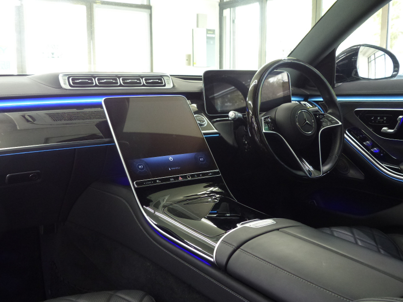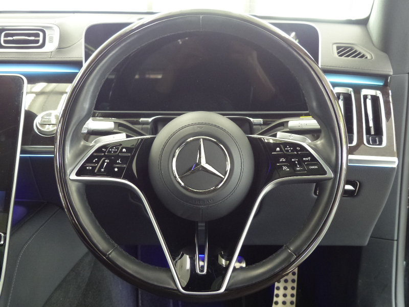 緊急通報サービスやスマートフォンによるリモートドアロック&アンロック・駐車位置検索を含むMercedes me connect搭載車!! 専門店ならではの1台!! 安心の右ハンドル!! 禁煙車 ワンオーナー 取説・記録簿付き もちろん修復歴御座いません!! 現行型よりフロントエンドのヘッドライトには、Sクラスならではの3点が光るデイタイムドライビングライトを備え、最新のメルセデス・ベンツのスポーティモデル群に共通する、上下方向に薄くわずかに切れ上がるデザインを採用!! ラジエーターグリルは下部が広がる台形を採用し、シャープでダイナミックなエクステリアを演出!! 新世代ステアリングホイールを初採用した他、対話型インフォテインメントシステム「MBUX」や安全運転支援システムをメルセデス・ベンツの最新のシステムにアップデートするなど、安全性と快適性をさらに向上!! 外装色は人気のオブシディアンブラック!! AMGラインならではのAMGスタイリングフロントスポイラー・サイド&リアスカート・Mercedes-Benzロゴ付ブレーキキャリパー・20インチAMGマルチスポークアルミホイールがスタイリッシュかつスポーティーなエクステリアを演出!! 内装は高級感漂うオプションのブラックナッパレザーシート&ハイグロス・スレートポプラウッドパネルの組み合わせ!! 最高出力435PS(カタログ値)を発生する新開発3L 直列6気筒ターボエンジン&インテグレーテッド・スターター・ジェネレーター(ISG)&最新鋭9速オートマティック(9G-TRONIC)&ECOスタートストップシステムが、Sクラスにふさわしい走行性を発揮しつつかつてない環境性能を実現しています!! 機能装備についても現行型より12.8インチの有機ELメディアディスプレイを搭載!! セーフティーにおきましては、ウルトラハイビーム付DIGITALライト・アダプティブハイビームアシストプラス・アテンションアシスト・アクティブパーキングアシストが装備!! メルセデスが先進技術を投入した安全支援システム・レーダーセーフティーパッケージに、アクティブレーンチェンジングアシスト等の新たな機能が加わり、安全運転を全面的にサポートし事故を未然に防いでくれます!! 便利な360度カメラシステムや自動開閉トランクリッド、フットトランクオープナーはもちろんの事、リアアクスルステアリング・クロージングサポーターが標準装備されております!! さらにはオプションのベーシックパッケージ(パノラミックスライディングルーフ・アクティブアンビエントライト・前席シートベンチレーター・後席シートヒーター・エアバランスパッケージ等)&レザーエクスクルーシブパッケージ(Burmester 3Dサラウンドサウンドシステム・リラクゼーション機能・マルチコントロールシートバック・ドライビングダイナミックシート・ステアリングヒーター等)等が装備されており、Sクラスに相応しい豪華装備充実の一台です!! 内・外装共にとても綺麗でもちろん機関も良好!! 全てにおいて洗練されたW223 S500 4マチック AMGライン レザーエクスクルーシブ&ベーシックパッケージをお探しの方是非ともこの機会をお見逃し無く!!