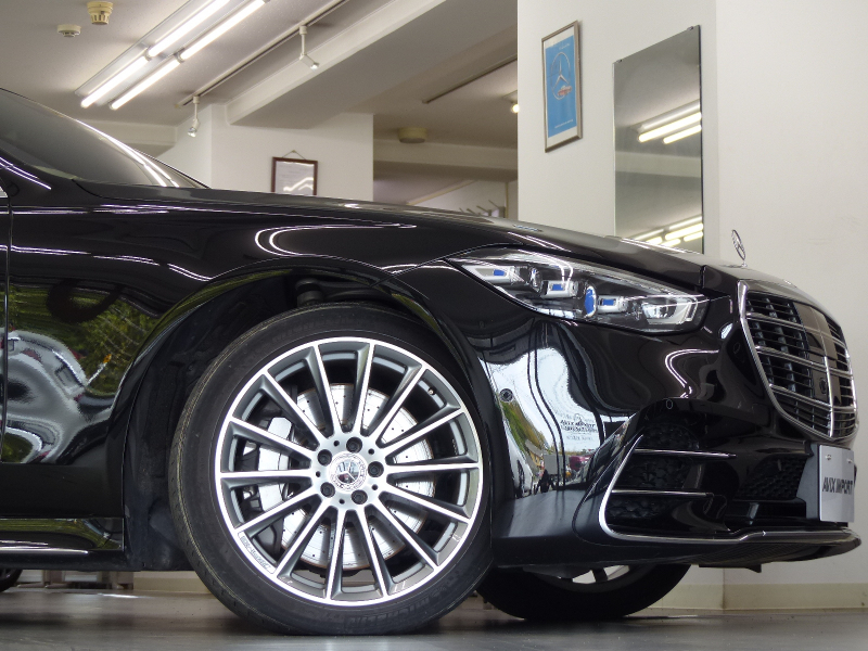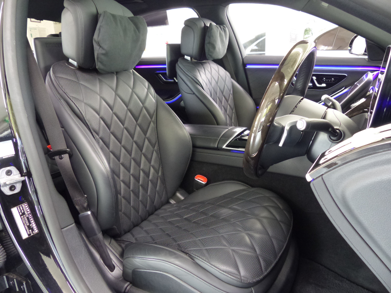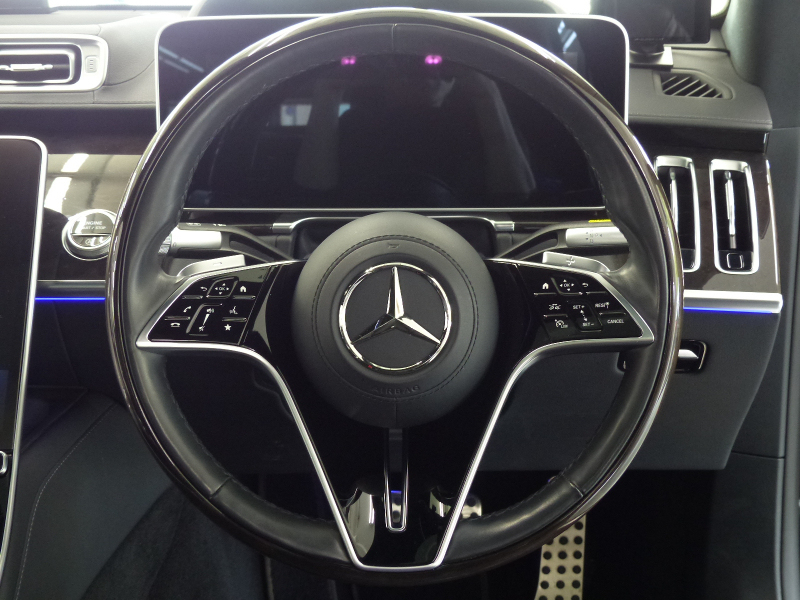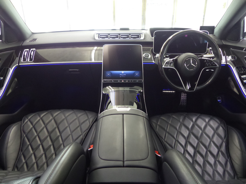 緊急通報サービスやスマートフォンによるリモートドアロック&アンロック・駐車位置検索を含むMercedes me connect搭載車!! 専門店ならではの1台!! 安心の右ハンドル!! 禁煙車 取説・記録簿付き もちろん修復歴御座いません!! 現行型よりフロントエンドのヘッドライトには、Sクラスならではの3点が光るデイタイムドライビングライトを備え、最新のメルセデス・ベンツのスポーティモデル群に共通する、上下方向に薄くわずかに切れ上がるデザインを採用!! ラジエーターグリルは下部が広がる台形を採用し、シャープでダイナミックなエクステリアを演出!! 新世代ステアリングホイールを初採用した他、対話型インフォテインメントシステム「MBUX」や安全運転支援システムをメルセデス・ベンツの最新のシステムにアップデートするなど、安全性と快適性をさらに向上!! 外装色は人気のオブシディアンブラック!! AMGラインならではのAMGスタイリングフロントスポイラー・サイド&リアスカート・Mercedes-Benzロゴ付ブレーキキャリパー・20インチAMGマルチスポークアルミホイールがスタイリッシュかつスポーティーなエクステリアを演出!! 内装は高級感漂うブラックナッパレザーシート&ハイグロス・スレートポプラウッドパネルの組み合わせ!! 最高出力503PS(カタログ値)を発生する新開発4L V型8気筒ターボエンジン&インテグレーテッド・スターター・ジェネレーター(ISG)&最新鋭9速オートマティック(9G-TRONIC)&ECOスタートストップシステムが、Sクラスにふさわしい走行性を発揮しつつかつてない環境性能を実現しています!! 機能装備についても現行型より12.8インチの有機ELメディアディスプレイ&3Dコックピットディスプレイを搭載!! セーフティーにおきましては、ウルトラハイビーム付DIGITALライト・アダプティブハイビームアシストプラス・アテンションアシスト・アクティブパーキングアシストが装備!! メルセデスが先進技術を投入した安全支援システム・レーダーセーフティーパッケージに、アクティブレーンチェンジングアシスト等の新たな機能が加わり、安全運転を全面的にサポートし事故を未然に防いでくれます!! 便利な360度カメラシステムや自動開閉トランクリッド、フットトランクオープナーの他、リアアクスルステアリング・クロージングサポーターが標準装備されております!! さらには上級グレードS580 4マチックならではの後席メモリー付パワーシートや後席専用クライメートコントロールはもちろんの事、ベーシックパッケージ(パノラミックスライディングルーフ・アクティブアンビエントライト・前席シートベンチレーター・後席シートヒーター・エアバランスパッケージ等)やレザーエクスクルーシブパッケージ(Burmester 3Dサラウンドサウンドシステム・リラクゼーション機能・マルチコントロールシートバック・ドライビングダイナミックシート・ステアリングヒーター等)の他、オプションのリアコンフォートパッケージ(リアエンターテインメントシステム・サンプロテクションパッケージ・アクティブマルチコントロールシートバックパッケージ等)や3Dコックピットディスプレイ・ARヘッドアップディスプレイ等が装備されており、Sクラスに相応しい豪華装備充実の一台です!! 内・外装共にとても綺麗でもちろん機関も良好!! 全てにおいて洗練されたW223 S580 4マチックロング AMGライン リアコンフォート&レザーエクスクルーシブパッケージをお探しの方是非ともこの機会をお見逃し無く!!