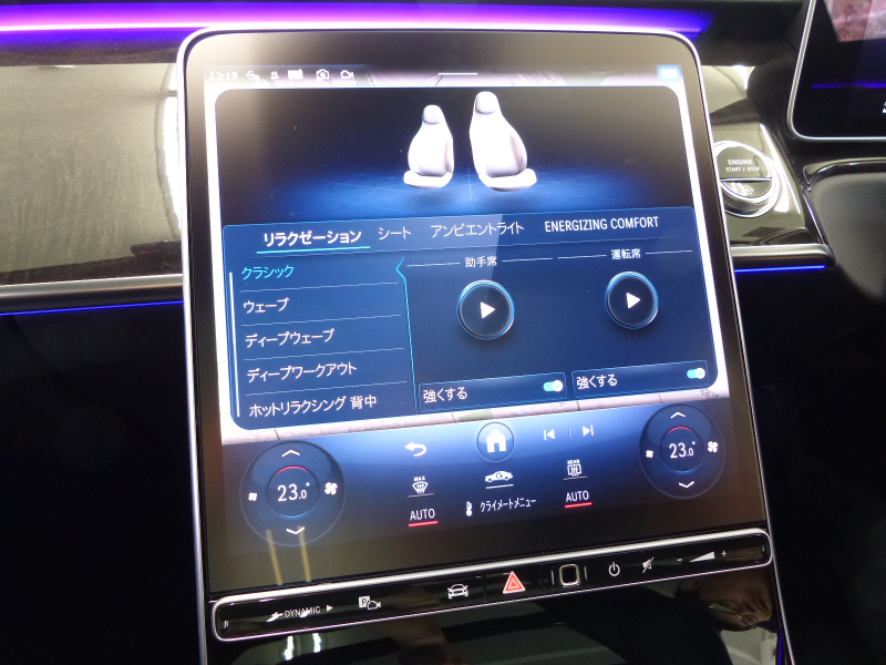 Burmester 3Dサラウンドサウンドシステム ブラックナッパレザーシート ラグジュアリーヘッドレスト 前席アクティブマルチコントロールシートバックパッケージ(アクティブドライビングダイナミックシート リラクゼーション機能) ウォームコンフォートパッケージ(ステアリングヒーター 前席アームレストヒーター 後席アームレストヒーター) 前席エナジャイジングパッケージ(エナジャイジングコンフォートプログラム エナジャイジングコーチ)