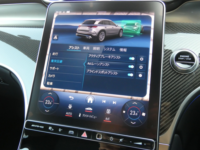 メモリー付パワーシート(運転席) メモリー付パワーシート(助手席) 電動ランバーサポート(運転席・助手席) 分割可倒式シート シートヒーター(後席左右) シートベンチレーター ステアリングヒーター デジタルコックピットディスプレイ メディアディスプレイ ヘッドアップディスプレイ MBUXARナビゲーション Burmesuter3Dサラウンドサウンドシステム クライメートコントロール 自動防眩ルームミラー 電動調整・可倒式ドアミラー 指紋認証機能 トランスペアレントボンネット AMGトラックペース AMGリアルパフォーマンスサウンド ブランドロゴプロジェクターライト 乗員確認通知システム テレビ機能 フットトランクオープナー キーレスゴー EASY-PACK自動開閉テールゲート キーレススタート ワイヤレスチャージング 車両接近通報装置 12V電源ソケット AMGドライブコントロールスイッチ