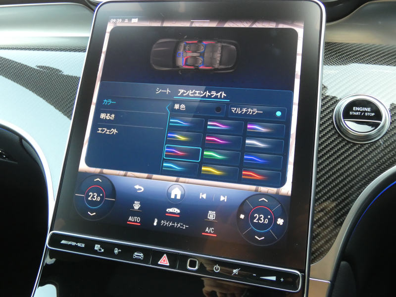 スポーツシート ナッパレザーシート AMGカーボンファイバーインテリアトリム ハイグロスブラックセンタートリム ファブリックルーフライナー AMGパフォーマンスステアリング(ナッパレザー) アンビエントライト アンビエントライトプレミアム ARTICOダッシュボード AMGイルミネーテッドステップカバー
