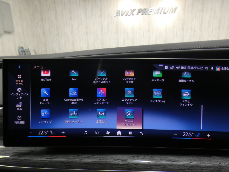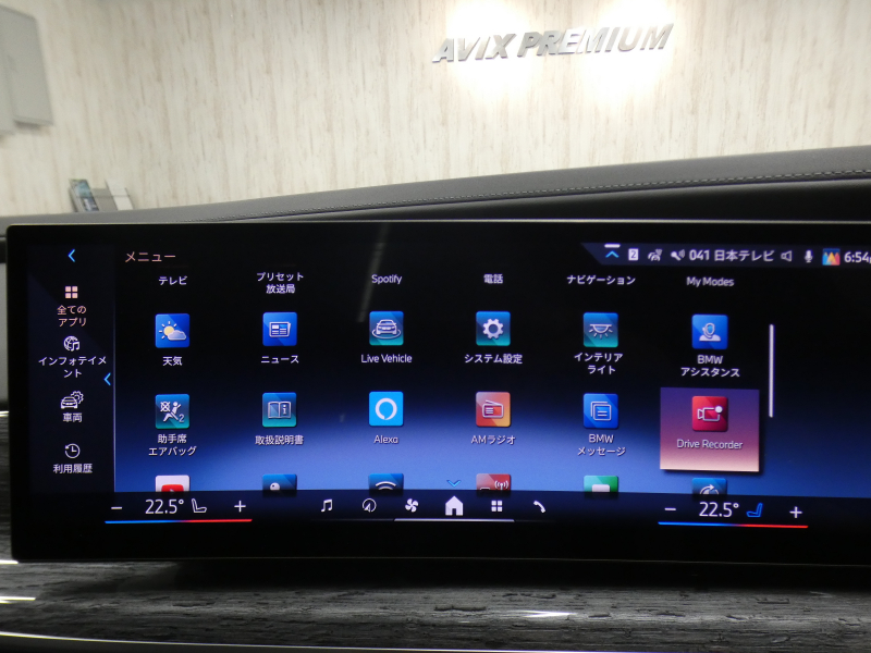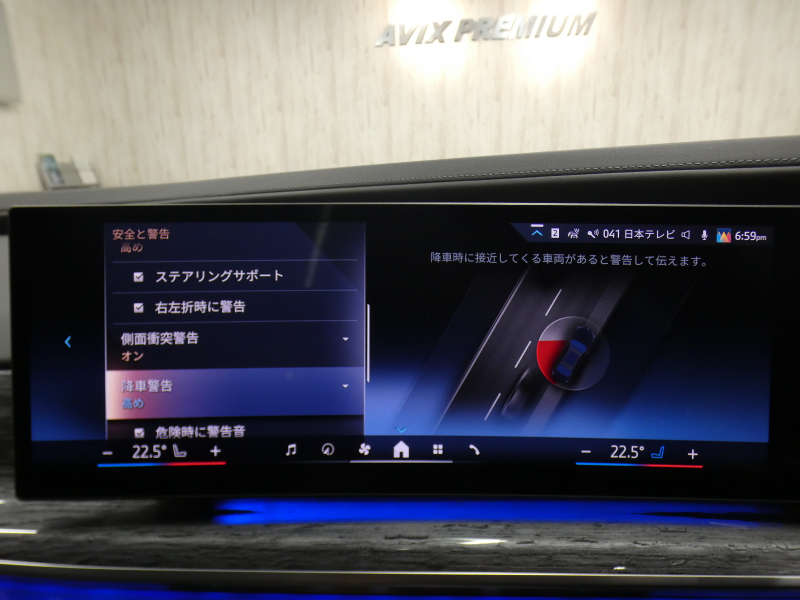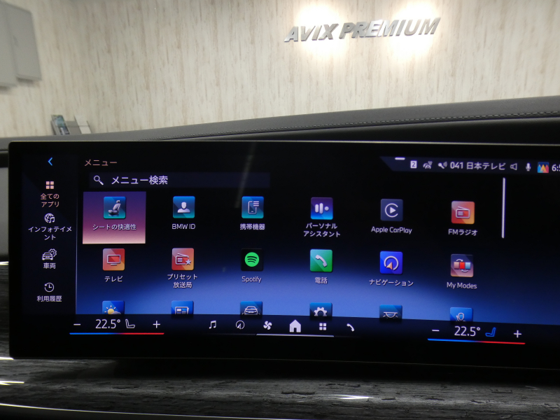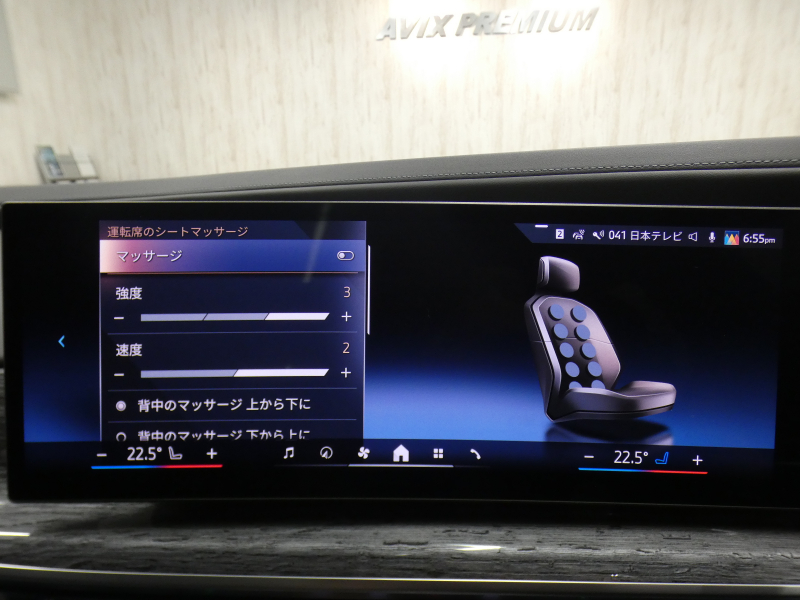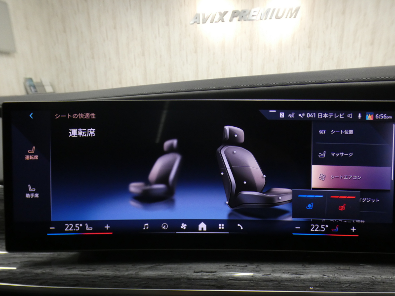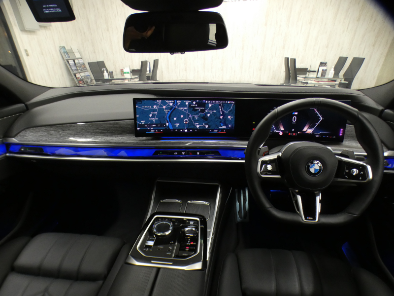 BMWライブ・コックピット(BMWカーブド・ディスプレイ、12.3インチ マルチ・ディスプレイ・メーター・パネル、14.9インチ ワイド・コントロール・ディスプレイ (タッチ・パネル機能付)、HDDナビゲーション・システム(VICS 3メディア対応)、BMWインテリジェント・パーソナル・アシスタント (AI音声会話システム))、ワイヤレス・チャージング、パーソナルeSIM、ハンズフリー・テレフォン・システム、ITSスポット対応DSRC車載器(ルーム・ミラー内蔵、ETC機能付)、電動式チルト&テレスコピック・ステアリング・コラム クラフテッド・クリスタル・フィニッシュ、アンビエント・ライト、BMWインタラクション・バー、オーディオ・ビジュアル・システム(地上デジタルTVチューナー)、USBオーディオ・インターフェイス、トラベル&コンフォート・システム(Type-C対応USBソケット(高速充電機能付))、4ゾーン・オートマチック・エア・コンディショナー (ナノ・ファイバー・フィルター〔花粉除去機能〕付)(運転席&助手席 独立温度調節機能 後席左右 独立温度調節機能 パーキング・ベンチレーション リモート・クライメート・コントロール機能)、シート(マルチファンクション・シート(運転席&助手席、メモリー機能付) アクティブ・ベンチレーション・シート(運転席&助手席)、マッサージ・シート(運転席&助手席)、シート・ヒーティング(フロント&リヤ))、スルーローディング・システム、センサテック・フィニッシュ・ダッシュボード、ベロア・フロア・マット、リーディング・ライト、リヤ・サイド・ウインドー・ローラー・ブラインド(電動)、クライメート・コンフォート・ガラス(赤外線反射ガラス:全面)、自動防眩ルーム・ミラー、照明付バニティ・ミラー(フロント)、照明付バニティ・ミラー(リヤ)、照明付グローブ・ボックス、ドア・シル・プレート、フロント・センター・アームレスト(収納ボックス付)、リヤ・センター・アームレスト(収納ボックス付)、カップ・ホルダー(フロント&リヤ)、ストレージ・パッケージ(Type-C対応USBソケット )