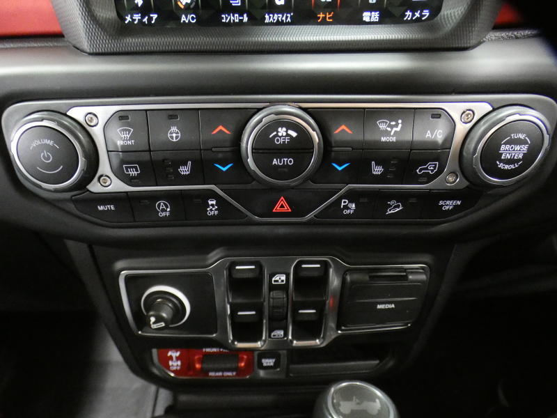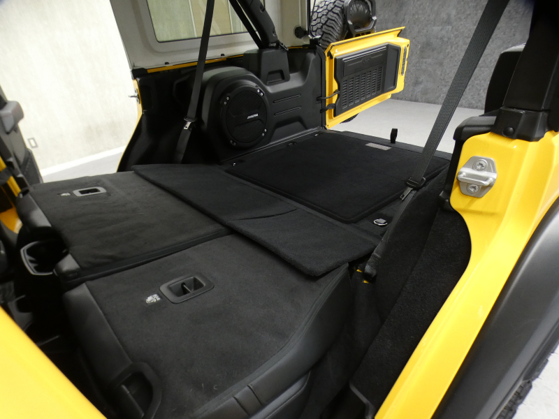 レザーシート(フロント:RUBICON7刺繍入り)、フロントシートヒーター、運転席高さ調整機能、運転席マニュアル2ウェイランバーサポート、60:40分割可倒式リアシート、リアシートセンターアームレスト(カップホルダー付)、モジュラーシートバックJeepユーティリティグリッドシステム