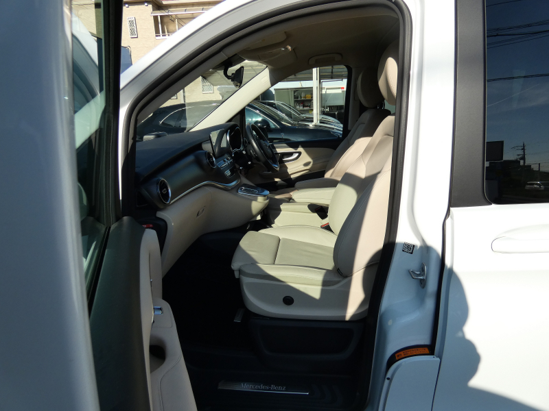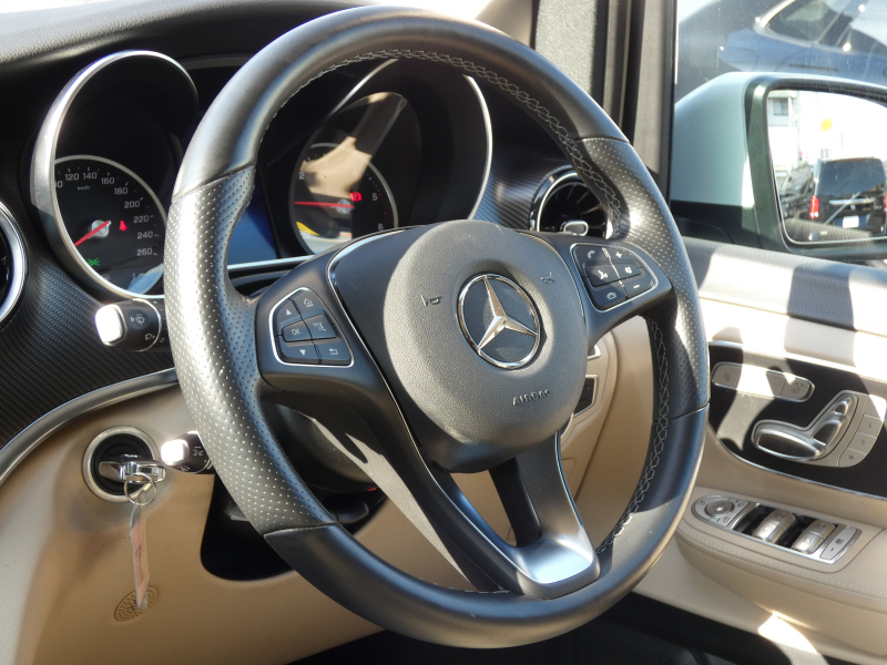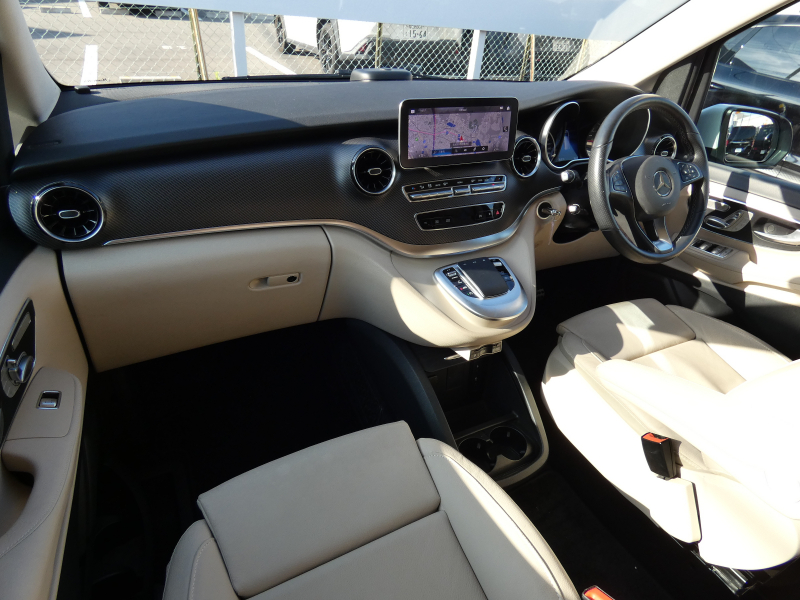 メルセデスベンツ Vクラス V220d AVG AMGライン 後期型 RSP 9速AT ベージュ革 LED MBUXナビ地デジ シートヒーター リアエアコン 360°カメラ 社外デジタルインナーミラー 19AW 7人乗 禁煙 1オナ 正規D車