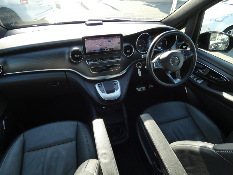 メルセデスベンツ Vクラス V220d AVG ロング AMGライン 後期型 RSP フルフラットシート 黒革 シートヒーター LED MBUXナビ地デジ 360°カメラ Brumester リアエアコン リアツインモニター 社外デジタルインナーミラー 純正19AW 7人乗 禁煙 正規D車