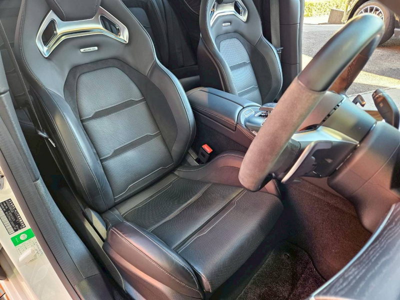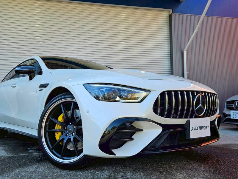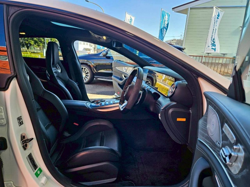 運転しやすく安心の右ハンドル、正規ディーラー車!! ワンオーナー 取説・記録簿付 事故歴ありません!! 綺麗な外装色ダイヤモンドホワイトにフェイスリフトが施工されたGT53専用エクステリア&AMGダイナミックパッケージプラス専用21インチアルミホイールにイエローブレーキキャリパーが迫力有るエクステリアを演出!! 使用感はとても少なく心地良い禁煙の室内は開放感有るパノラミックルーフがオプション設定され、ブラックナッパレザーシート&グレーアッシュウッドインテリアトリムの組み合せにNEWステアリングが装着!! 快適な全席シートヒーターやベンチレーター、ブルメスターサラウンドシステム、エアバランスパッケージと豪華装備に加え後席クライメートコントロールやマルチコントロールシートバックも完備!! 12.3インチワイトディスプレイMBUX搭載ナビに360°カメラ&ヘッドアップディスプレイ、レーダーセーフティパッケージが安全運転を全面的にサポートし事故を未然に防いでくれます!! 直列6気筒ターボエンジン+ISG+4MATIC&電子制御9速AT(9G-TRONIC)にAMG RIDE CONTROL+エアサスペンションやAMGパフォーマンスエグゾーストシステムが相まってダイナミックな走行性と優れた低燃費を実現!! 実用性と先進性を兼ね揃えた人気車輌をお届け致します!!