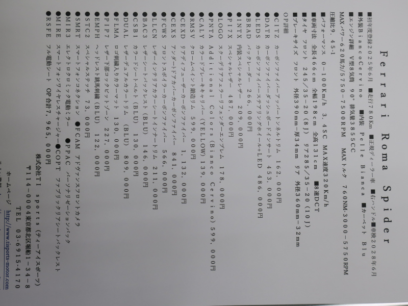 ■外装BiancoCervino ■内装 Pelle Bianca ■カーペット Blu