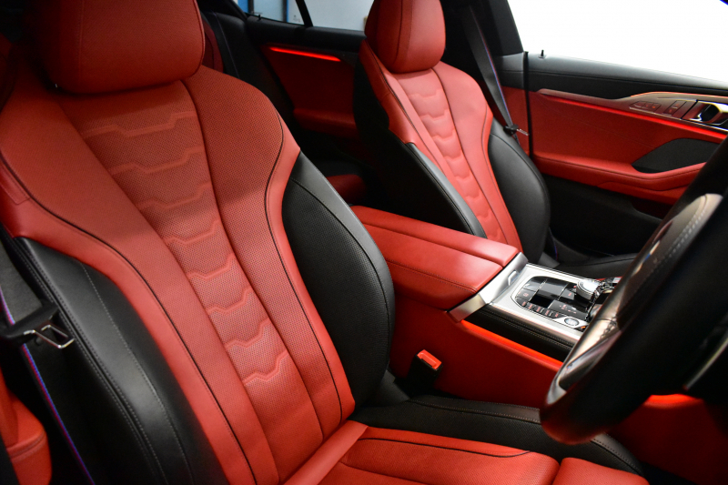 BMW 8シリーズ 840d Xドライブ グランクーペ Mスポーツ 4WD MテクニックスポーツP パノラマガラスサンルーフ レーザーLED ACC HUD 全席ヒーター付赤&黒革 前席ベンチレーション 20AW ハーマンカードン インテリセーフ ライブコックピット ジェスチャーC対応タッチパネルナビ3Dビュー 2年保証
