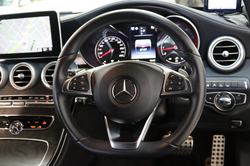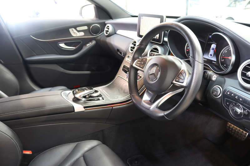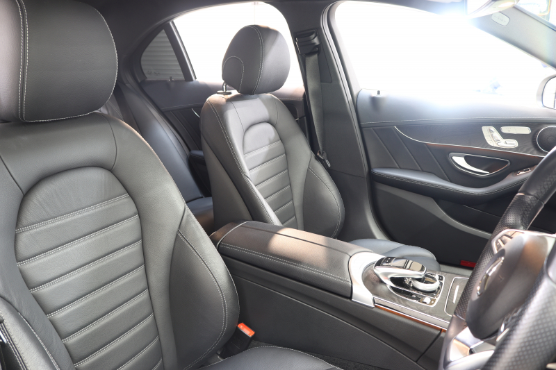 メルセデスベンツ Cクラス C200 AVG AMGライン レザーエクスクルーシブ&レーダーセーフティPKG 中期 キーレスゴー 黒本革 シートヒーター ヘッドアップD HDDナビTV BT音楽 バックカメラ PTS LEDライト フットトランクOP AMGエアロ&18AW ダイナミックセレクト エアサス 9AT 2年保証