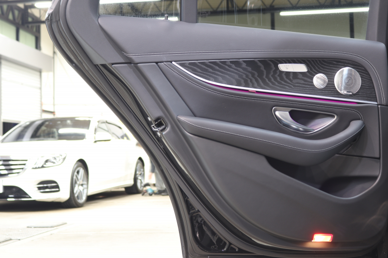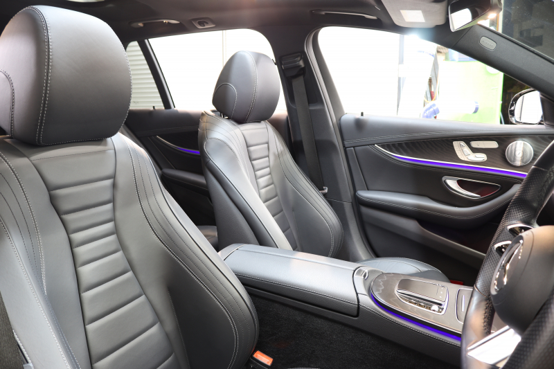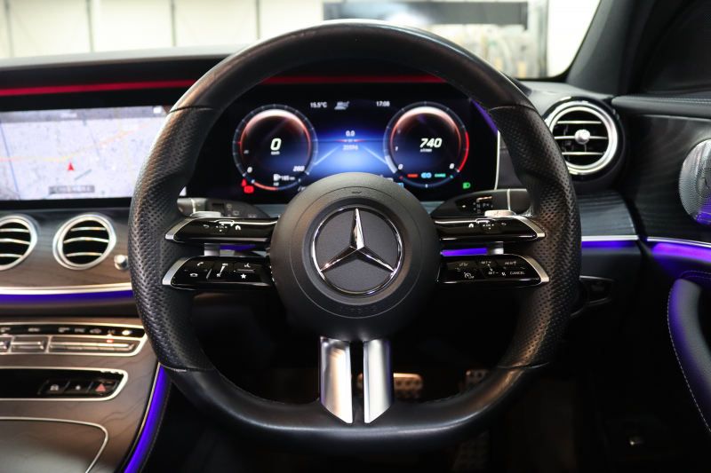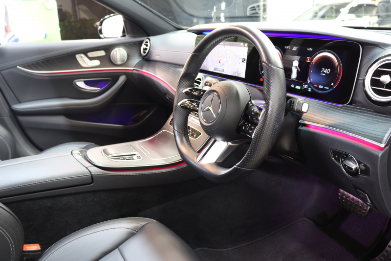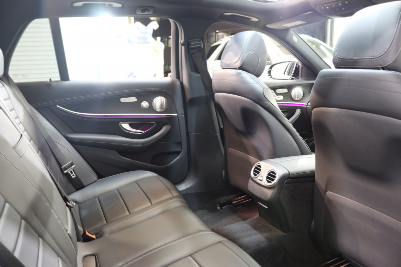 メルセデスベンツ Eクラス E200ステーションワゴン スポーツ AMGラインインテリア&エクスクルーシブ&レーダーセーフティPKG BSG搭載 後期 キーレスゴー 黒本革 パノラマSR ヘッドアップD MBUXナビTV&ARナビ スマホ連携 ブルメスター 360カメラ PTS LEDライト 自動Rゲート AMGエアロ&19AW 9AT 2年保証