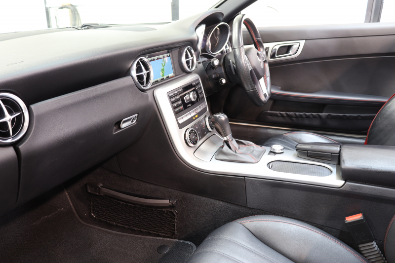 メルセデスベンツ SLKクラス SLK200 エクスクルーシブ AMGスポーツ&レーダーセーフティPKG キーレスゴー 黒本革 エアスカーフ ガラスルーフ HDDナビTV BT音楽 バックカメラ PTS DSRC キセノン AMGエアロ&18AW エアガイド 2年保証