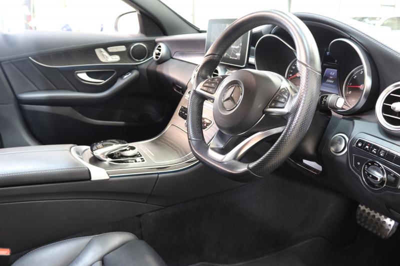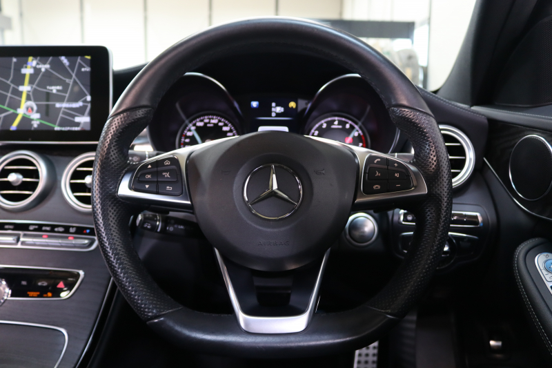メルセデスベンツ Cクラス C200 AVG AMGライン レザーエクスクルーシブ&レーダーセーフティPKG 1オーナー キーレスゴー 黒本革 パノラマSR HUD HDDナビTV BT音楽 バックカメラ PTS LEDライト 自動トランク エアバランスPKG AMGエアロ&18AW エアサス 2年保証