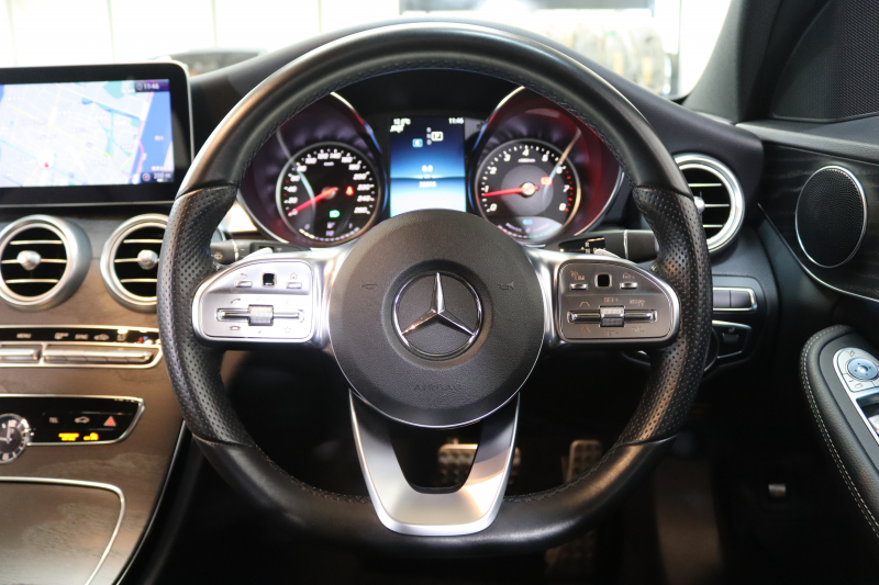 メルセデスベンツ Cクラス C200ステーションワゴン AVG AMGライン レーダーセーフティPKG BSG搭載 後期 キーレスゴー 黒革 HDDナビTV スマホ連携 バックカメラ PTS LEDライト 自動Rゲート AMGエアロ&18AW ダイナミックS エアサス 9AT 2年保証