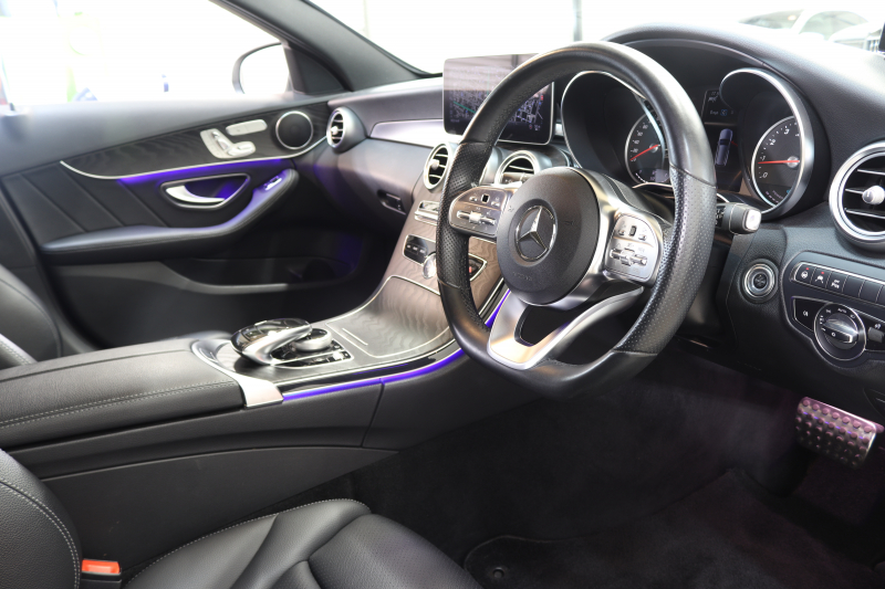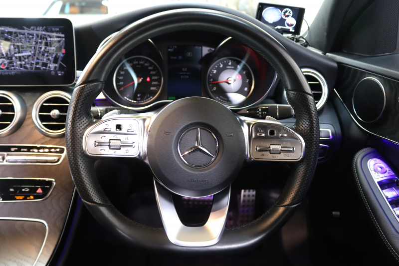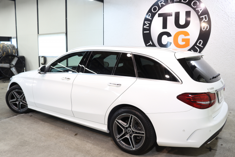 メルセデスベンツ Cクラス C200ステーションワゴン AVG AMGライン レーダーセーフティPKG BSG搭載 後期 キーレスゴー 黒革 HDDナビTV&キャンセラー スマホ連携 バックカメラ PTS LEDライト 自動Rゲート AMGエアロ&18AW ダイナミックS エアサス 9AT 2年保証