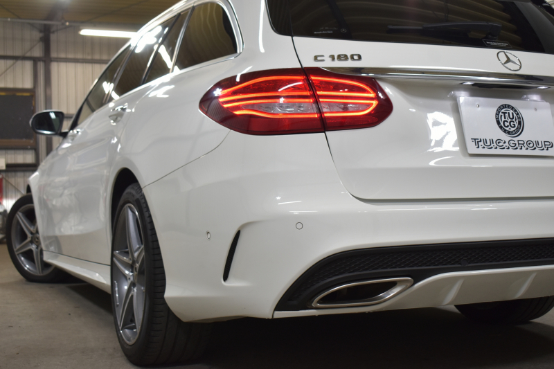 メルセデスベンツ Cクラス C180 ワゴン ローレウスエディション レーダーセーフティP 特別仕様車 MEコネクト パノラマサンルーフ ヒーター黒革 ディストロ BSM Lキープ AMGエアロ18AW キーレスGO PTS 電動リアゲート LEDヘッドライト 地デジナビ Bカメラ 2年保証