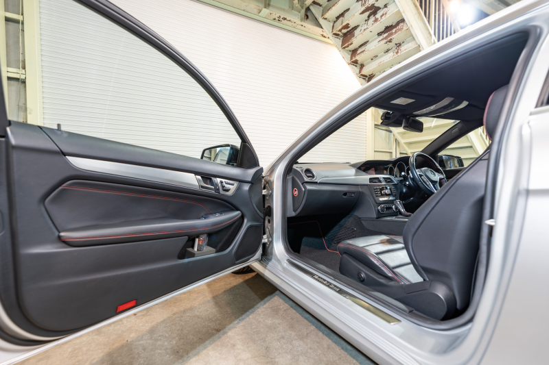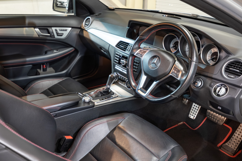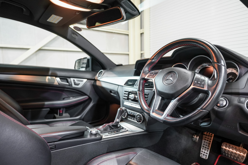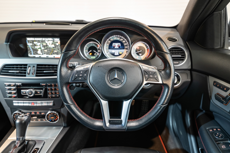 メルセデスベンツ Cクラス C250クーペ シュポルト レーダーセーフティ&ユーティリティPKG 1オナ Pスタ 黒革 ナビTV Bカメラ パークトロニック キセノン LEDドライビングライト 専用サス AMGエアロ&18AW ドリルドローター ロゴ入キャリパー 2年保証