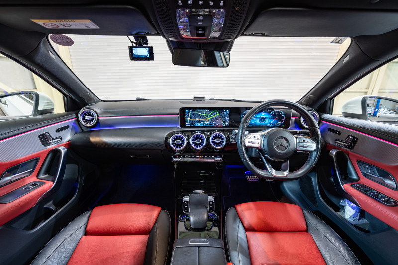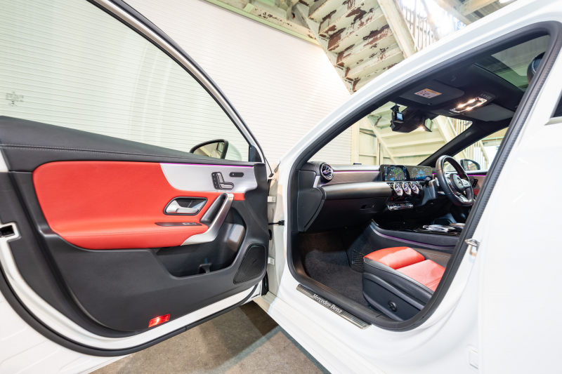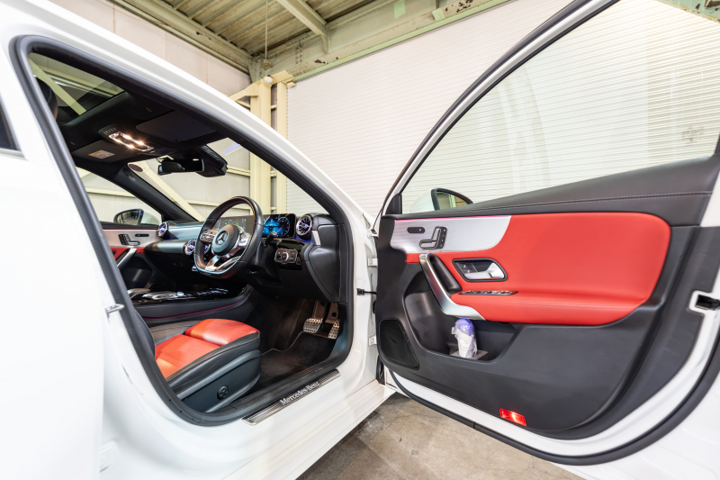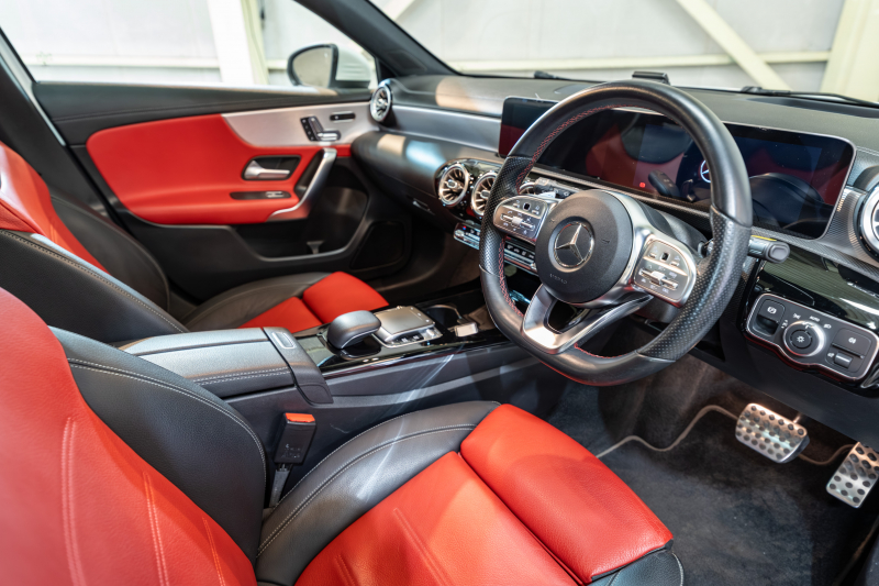 メルセデスベンツ Aクラス A180スタイル AMGライン アドバンスド&レザーエクスクルーシブ&ナビ&レーダーセーフティPKG 1オーナー 黒/赤革シート パノラマSR MBUXナビ 360カメラ ADVスピーカー ヘッドアップD マルチカラーアンビエントライト マルチビームLED ACC BSM LCW 2年保証