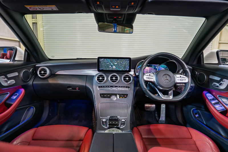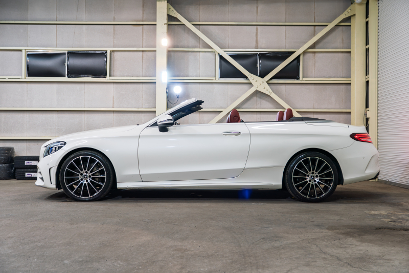 メルセデスベンツ Cクラス C180カブリオレ スポーツ レザーエクスクルーシブ&レーダーSP 後期 赤革 ナビTV Bカメ LEDヘッドライト AMGエアロ&18AW ACC BSM LCW 2年保証