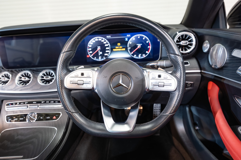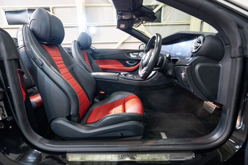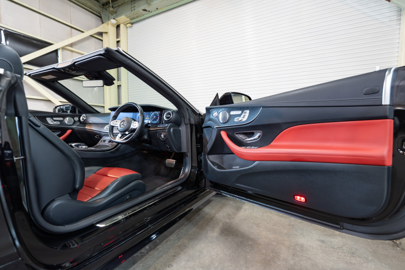 メルセデスベンツ Eクラス E200 カブリオレ スポーツ レーダーセーフティPKG 赤幌 黒革 シートヒーター 純正ナビ フルセグTV CarPlay HUD マルチビームLED ブルメスター マルチカラーアンビエントライト AMGエアロ&19インチAW 2年保証
